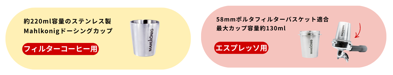フィルターコーヒー用とエスプレッソ用の ドージングカップをそれぞれ1つずつプレゼント